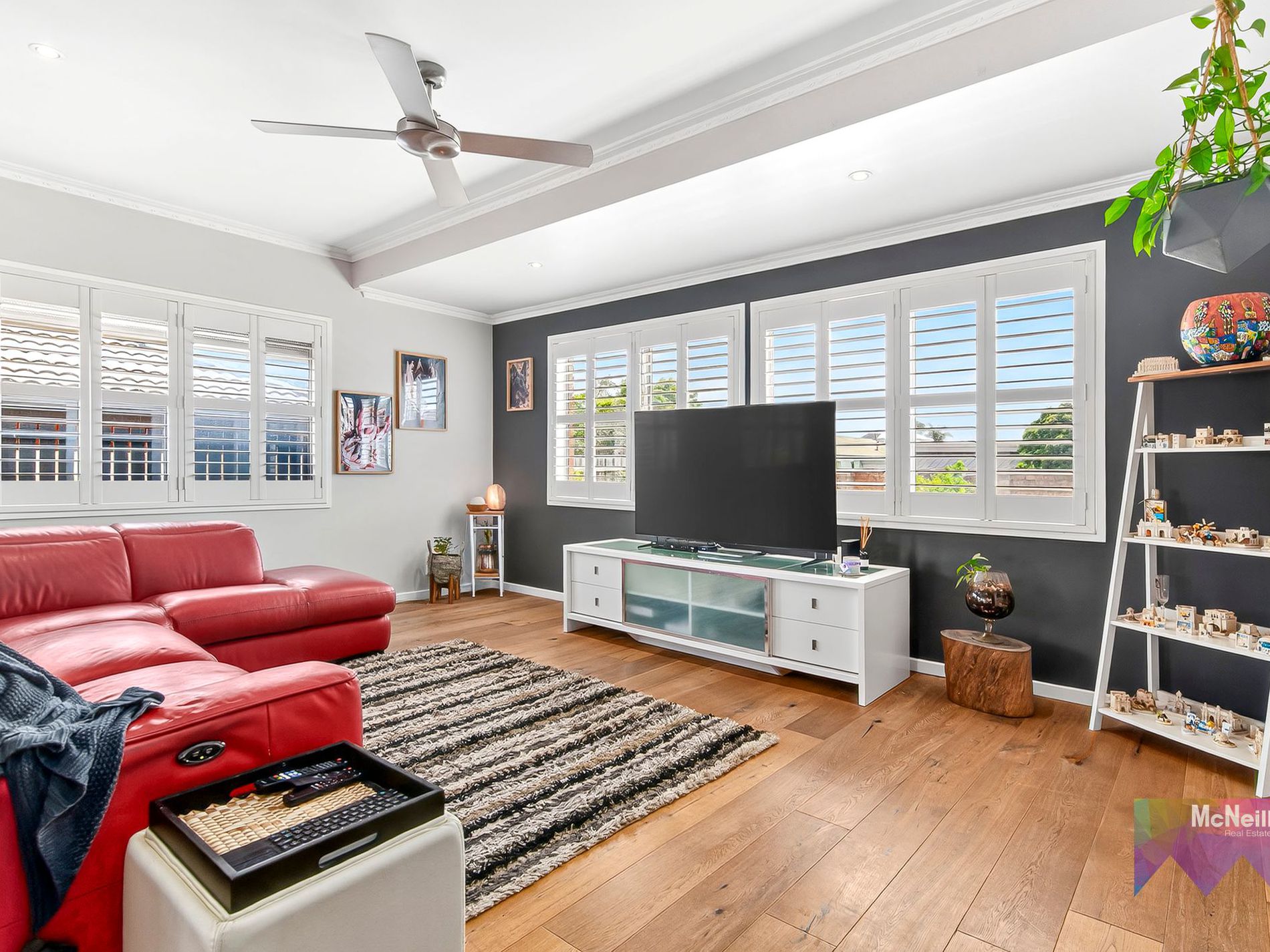 Through the gate, a landscaped front courtyard sets a calm tone. Step inside to an oversized living room washed in natural light—easy to picture slow mornings here, or a quiet night in after a beach walk.
